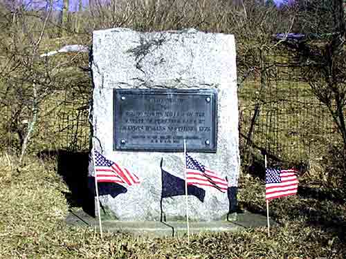 On the Carr farm, 2 and1/2 miles south of West Edmeston on the River Road, the Adam Helmer story is briefly given on a monument just below the corner. The Mohawk Valley and frontier settlements had been raided many times by the Iroquois, led by the Johnsons and the Butlers in 1776 and 1777. The advantage which prior notice of an impending raid would give led Adam Helmer and three friends to stand watch at this place in September 1778. They were surprised by a band of Native Americans, and Helmer's friends were killed. He escaped but was closely pursued as he ran 34 miles to warn the settlers at Andrustown, Columbia and Fort Herkimer.
