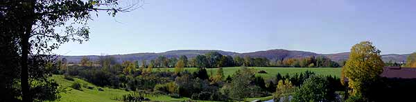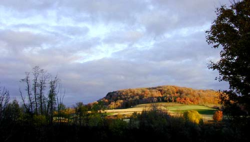 The Unadilla Valley is of glacial origin, created by the gouging and scouring effect of a southward-moving ice sheet several thousand feet thick. Later, the valley was filled by debris left behind as the ice melted and by runoff from ice remaining to the north. The river is described as "underfit"---that is, flowing in a valley too big for the river. Early settlers were attracted to the valley by the water power possibilities of the river and the easily tilled fields of the valley floor. Earlier, Native Americans camped along the river, where they benefited from the fish and game resources of the valley. Their stone tools are found on level fields near the river. The word Unadilla is an Oneida Native American word meaning "meeting place." It is conceivable that the height of Mt. Markham, and the distinctive outline, made this an easily found meeting place for their hunting parties. At 1,630 feet, Mt. Markham is not the highest elevation in the area, but the almost sheer drop of its west face has earned it the distinction of being called a mountain.