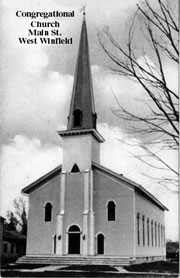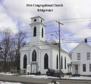 The First Congregational Church has stood on North Street (Route 8) since 1834. It is the typical New England church with both Greek Revival (pedimented roof line and over-door treatment along with the wide vertical end boards) and Gothic (arches windows) influences.