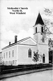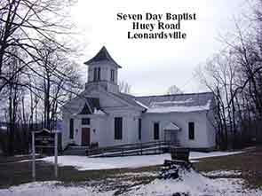 The Seven Day Baptist Church on Huey Road was built in 1850. In 1876 it was raised to add a story beneath, a tall steeple and the addition on the west side were added. Lightning struck the steeple in the 1930s and was replaced with the existing smaller belfry. It still retains its Greek Revival influences desite all the modifications. The Methodist Church is on Route 8 in the village.