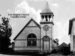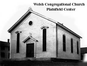 Unadilla Forks had two churches- a Free Baptist and First Baptist- both on the same street. Eventually (and probably inevitably) they joined using only the building that still stands which was rebuilt after a fire in 1896. Since the Victorian period was in full swing the building has some "Victorian Stick" features of applied flat decoration to the buildings surface. The photo is from 1926 when the paint scheme made these easy to distinguish. The First Baptist was an early Greek Revival influence church but was razed in 1958. The Welsh Congregational Church was located in the four corners of Plainfield Center, not far from Unadilla Forks. Another classic Greek Revival building it was built in 1869, closed in 1941 and taken down soon after.