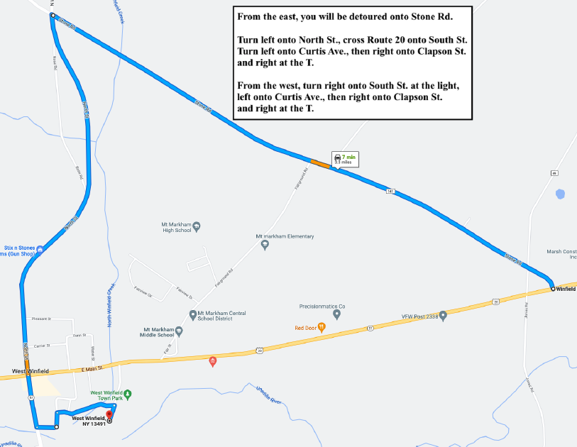Bridge construction work will close the park's entry along State Route 20, but the park remains accessible from a rear entry off Clapson Street. The map below shows detour routes into the park, and signs also will be posted along the routes.